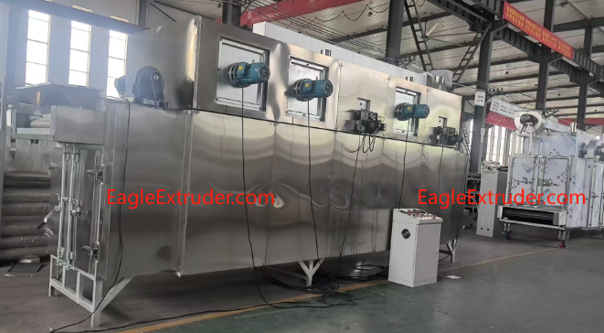 A tunnel belt oven is a continuous baking system designed for large-scale snack production. Products are placed on a moving wire mesh or Teflon belt that travels through a long, temperature-controlled baking chamber. This method ensures even heat distribution and consistent results—batch after batch.