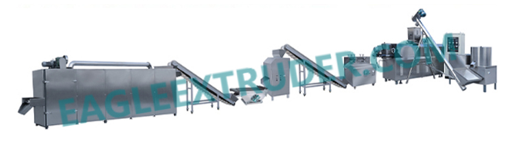 Breadcrumb is mainly used for beefsteak and drumstick as frying dressing .The long and sliver-shaped breadcrumbs are of porous structure inside .After frying ,the crumbs become straight up bit by bit.They are not only puffed and nice in appearance but also crisp and delicate in taste.Breadcrumbs processing line is specially designed and developmed according to market demand .The whole line can be finished from the raw material ,extrusion ,drying to finished products automatically.
