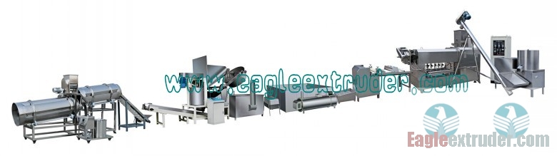 1. Pellet/ chips/ extruder frying food are produced by single-screw extruder, or new twin screw extruder type.